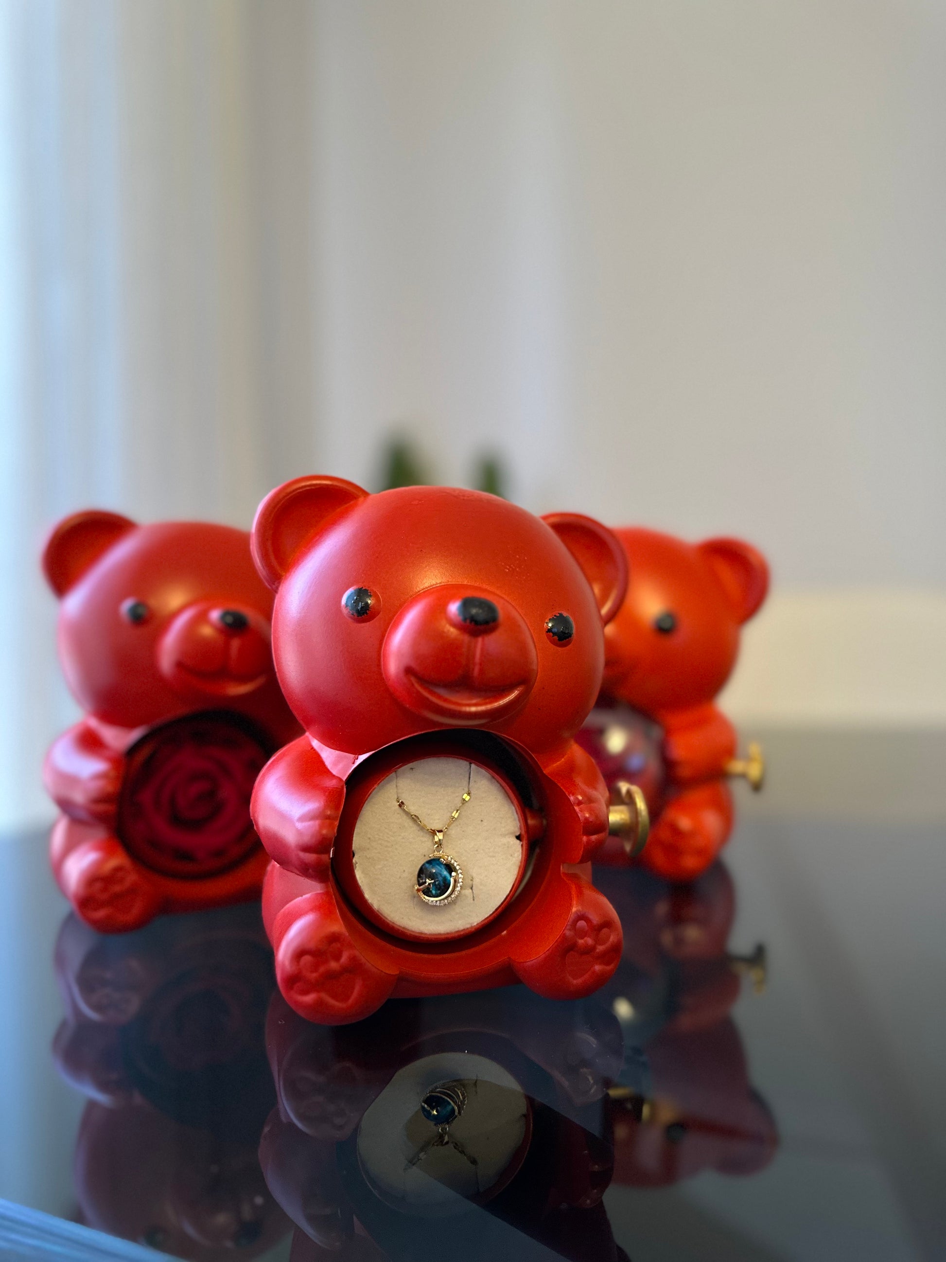 SEVİMLİ AYICIK GÜL KUTUSU VE IŞIKLI KUTU İÇİNDE YÜZÜK